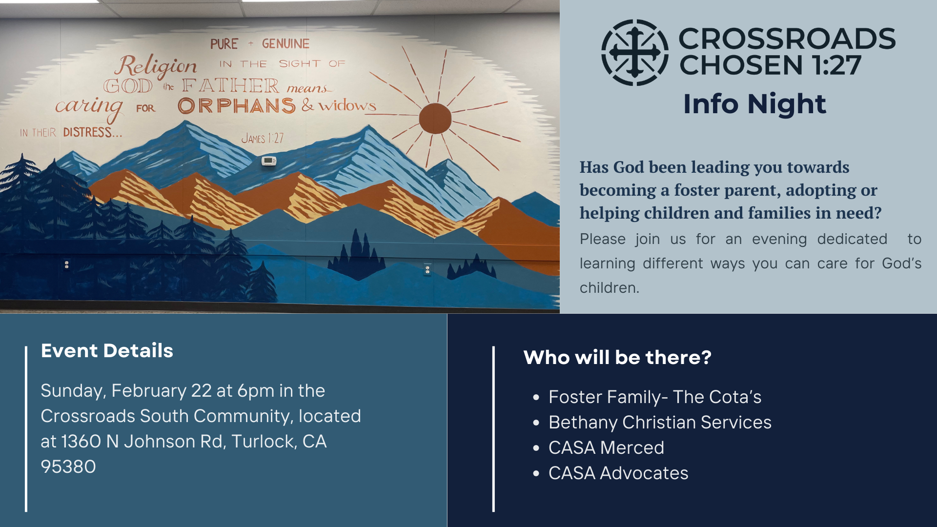 Events UPCOMING EVENTS Register to Dedicate Register for Chosen's Parent Night Out! Register for Camp Register For High School Summer Camp Register for Junior High Summer Camp Ongoing Events